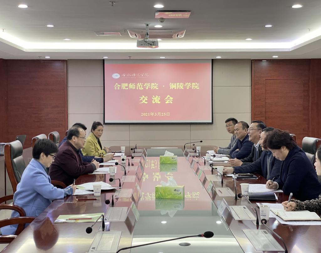 本网讯 3月25日下午,铜陵学院党委副书记、校长倪爱国带领教师工作部部长、人事处处长王亮,组织部副部长张小怡,教务处副处长李欣一行来beat365官网调研交流。校党委书记徐成钢,党委副书记、校长方东玲,党委副书记、副校长李进华热情接待了倪爱国一行。beat365官网组织部、人事处、教务处等部门负责人参加座谈会并进行了对口交流。