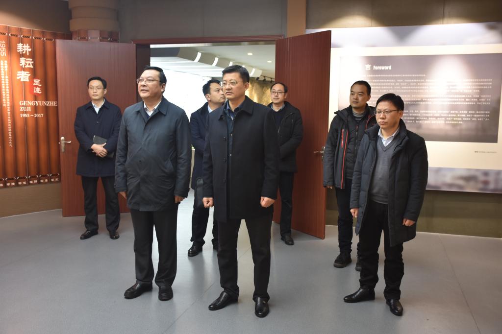 揭牌仪式前,党委书记徐成钢陪同夏捍东一行参观了校史馆、学陶馆。