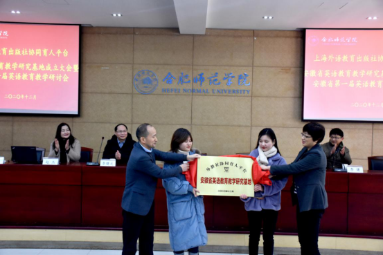 beat365中文官方网站党委副书记、校长方东玲和上海外语教育出版社副社长叶青分别向大会致词,并为基地揭牌。方东玲在致辞中介绍了beat365中文官方网站的办学历史以及学校培养目标、办学宗旨、办学特点、课程建设体系基本情况和取得的丰硕成果,并就外国语学院英语教育特色品牌、培养基础教育英语学科优质师资、服务安徽英语基础教育特色、外语语言技能和职业技能二位一体培养模式等情况作了说明。她希望新成立的英语教育教学研究基地在人才培养、师资队伍、实训基地、教学平台建设等方面多出成果、出好成果、多做贡献。大会由beat365中文官方网站外国语学院院长黄波主持。