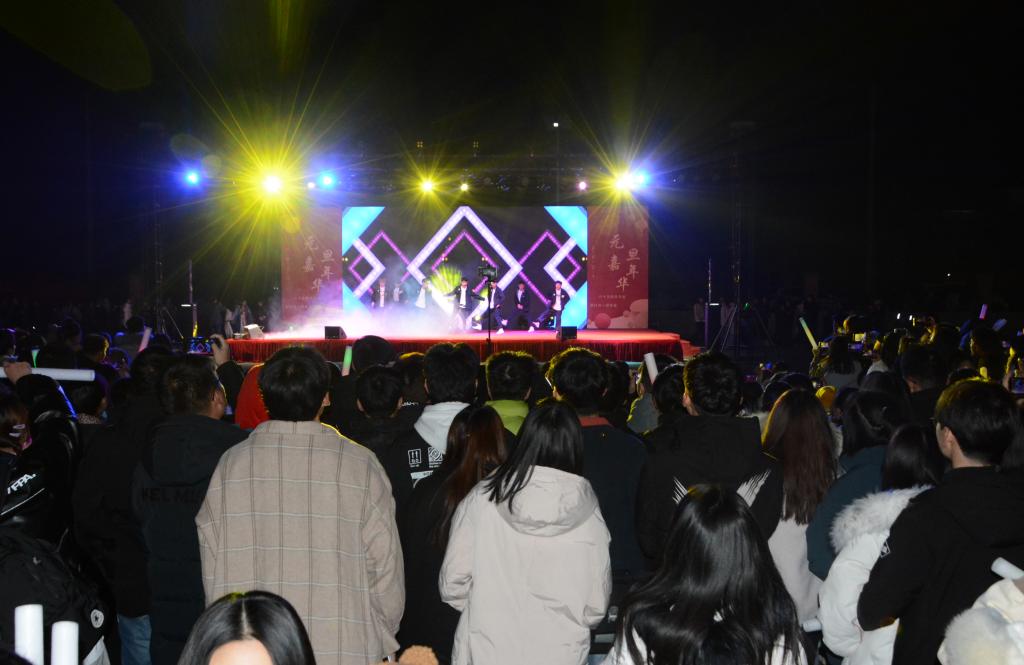 18点30分,元旦嘉年华文艺晚会在滨湖校区足球场盛大开幕。校团委全体人员、各二级学院党团组织负责人、辅导员老师及近3000名学生到场观看。