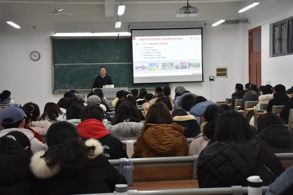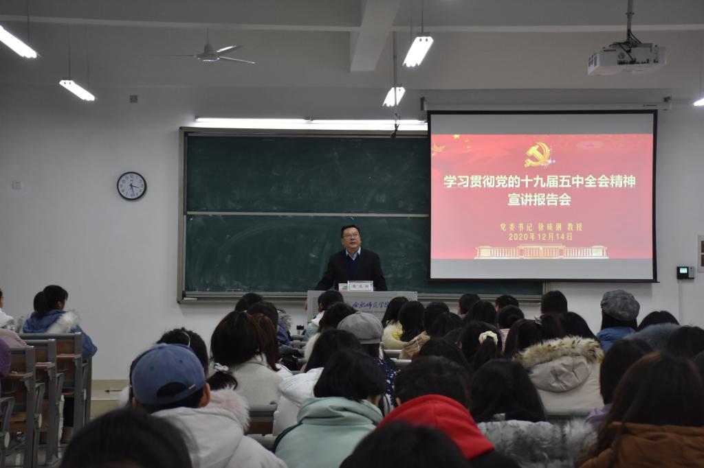 本网讯 为进一步落实中央、省委以及省委教育工委关于开展党的十九届五中全会精神学习宣讲和高校党政领导干部带头讲好思政课的工作要求,根据学校课程安排,12月14日下午,校党委书记徐成钢教授深入课堂一线,在滨湖校区博学楼L302教室为150余名同学上了一堂丰富生动的思想政治理论课。