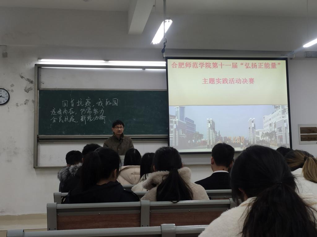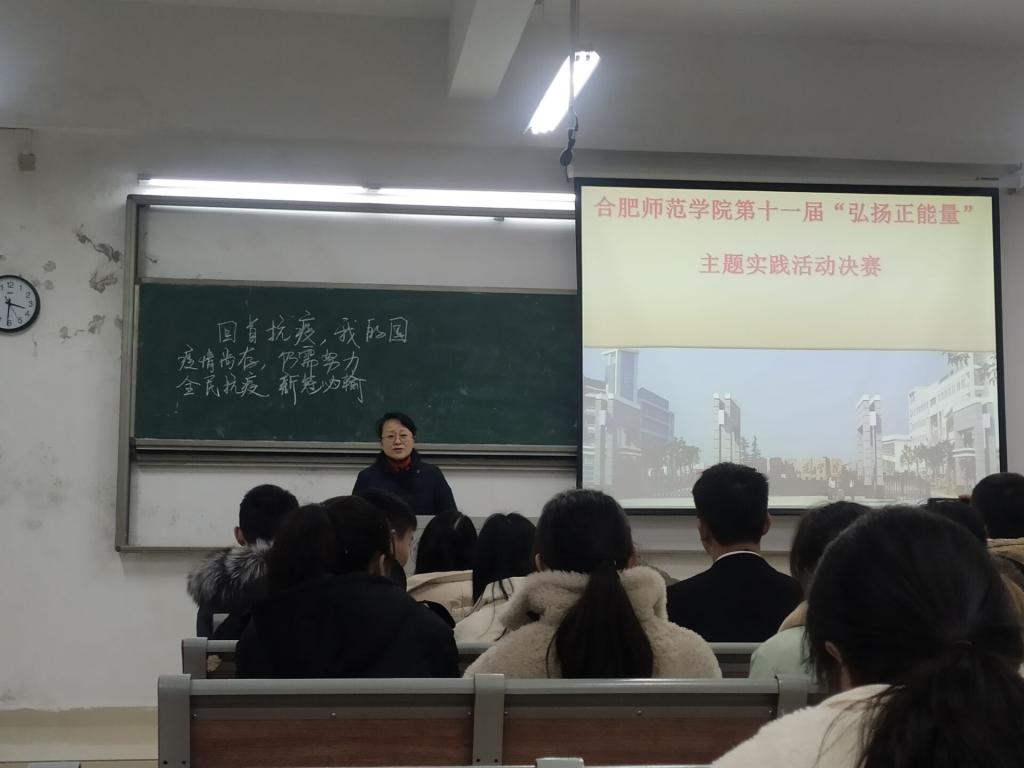 本网讯 为贯彻落实全国高校思想政治工作会议精神和习近平总书记“3.18”重要讲话精神,推进思想政治理论课教学改革,12月9日下午,以“抗疫:我眼中的中国”为主题的beat365中文官方网站学院思想政治理论课第十一届“弘扬正能量”主题实践活动决赛在滨湖校区博学楼A206教室举行。本次活动由就业创业工作处、教务处、团委、宣传部以及马克思主义学院等单位负责人担任评委。