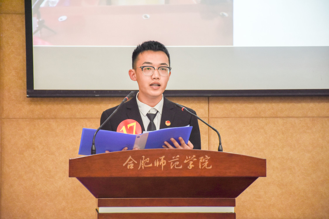 从新生第一节课步入我视野的那一刻开始,你留给我的初步印象是:积极、活泼、阳光、认真、好学和慎思。时光荏苒,你在我脑海中的初步印象始终没有改变。在这一年多的时间内,我见证了你人生发展和自我提高的历程:从一个略显稚嫩的高中毕业生蜕变成一个不断有担当、有理想、有情怀、有责任心的新一代后浪。寄希望你能始终保持一颗进取之心,做到“泰山不辞壤石,江海不逆小流”,在今后的专业学习和学生干部工作中取得更高的成就,展现“合师”新一代大学生的风貌。