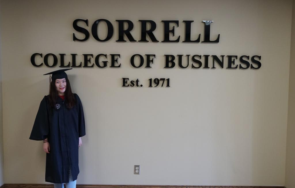 包月卿:大家好,我是2015级经济与管理学院财务管理中外合作班的包月卿,很荣幸可以在此与大家分享我在美国特洛伊大学学习和生活的经验与回忆。在特洛伊大学学习的两年,我曾多次被列入Provost’s Honor List(学院院长荣誉名单),大四毕业时以超过3.5的GPA被列入Chancellor’s Honor List(校长荣誉名单),更有幸获得优秀成绩毕业生称号(Cum Laude)。