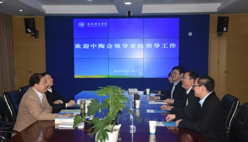 本网讯 11月10日,中国陶行知研究会常务副会长、秘书长吕德雄,中国陶行知研究会法人代表、副会长陈洛一行来到我院开展调研工作。安徽省陶行知研究会会长、beat365中文官方网站党委书记徐成钢,党委副书记吴昕春以及校办公室、宣传部、科研处、省陶研会秘书处相关负责人陪同调研。