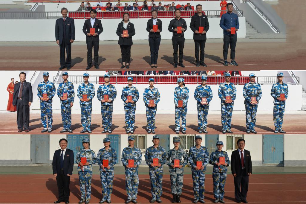 汇报表演结束后,院领导宣读《表彰2020级新生军训优秀学员、优秀辅导员和优秀教官的决定》;院领导、党委委员分别为优秀军训教官、优秀辅导员和优秀军训学员颁发荣誉证书。
