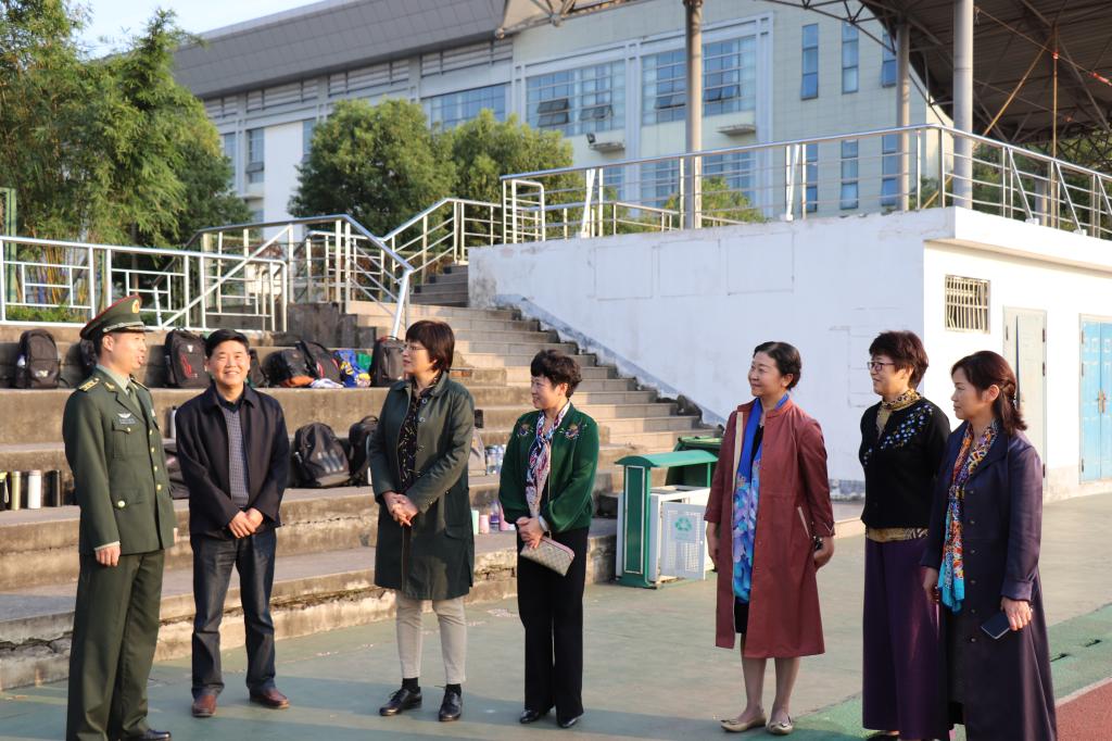 10月19日下午,党委副书记、院长方东玲,党委副书记吴昕春,与施训单位领导,来到锦绣校区田径场,共同看望慰问正在训练的2020级军训学生和军训教官。学生工作(部)处、化学与化学工程学院、生命科学学院、音乐学院等单位负责人陪同。