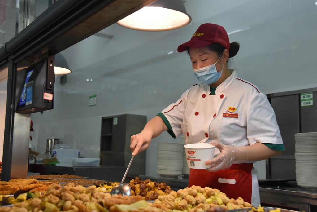 中午食堂人山人海,打饭的队伍好似一条条长龙,叔叔阿姨们手里的锅勺与盛着饭菜的器具碰撞出一首别样的交响乐。张勇是二楼食堂的主厨,他告诉记者同学从早上四点半开始,食堂的阿姨们就起来为迎接新生做准备工作。“我们根据同学们南北方的差异设计了不同的菜品,做大家爱吃的菜,安全的菜,是我们食堂工作人员应该做的事情。”张勇这样说。食品安全是师生健康的根本保障,食堂默默工作的厨师们,用自己的双手来筑牢师生饮食安全的第一道防线。