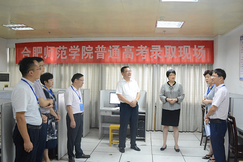 院领导详细询问了各学院、各专业生源情况,对我院今年首次进入本科一批次招生的师范专业投档生源充足,录取分数已超过安徽省本科一批次分数线,表示十分高兴和欣慰。