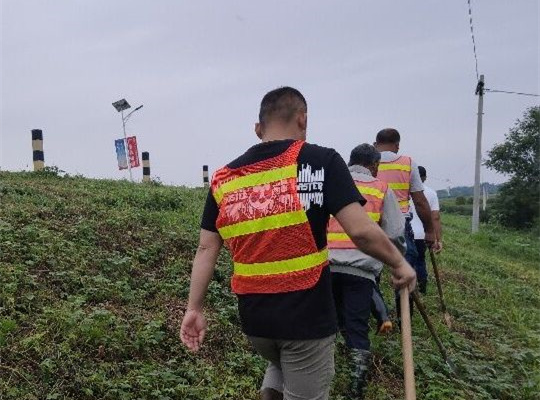 图为杨成龙同学在巡查堤坝