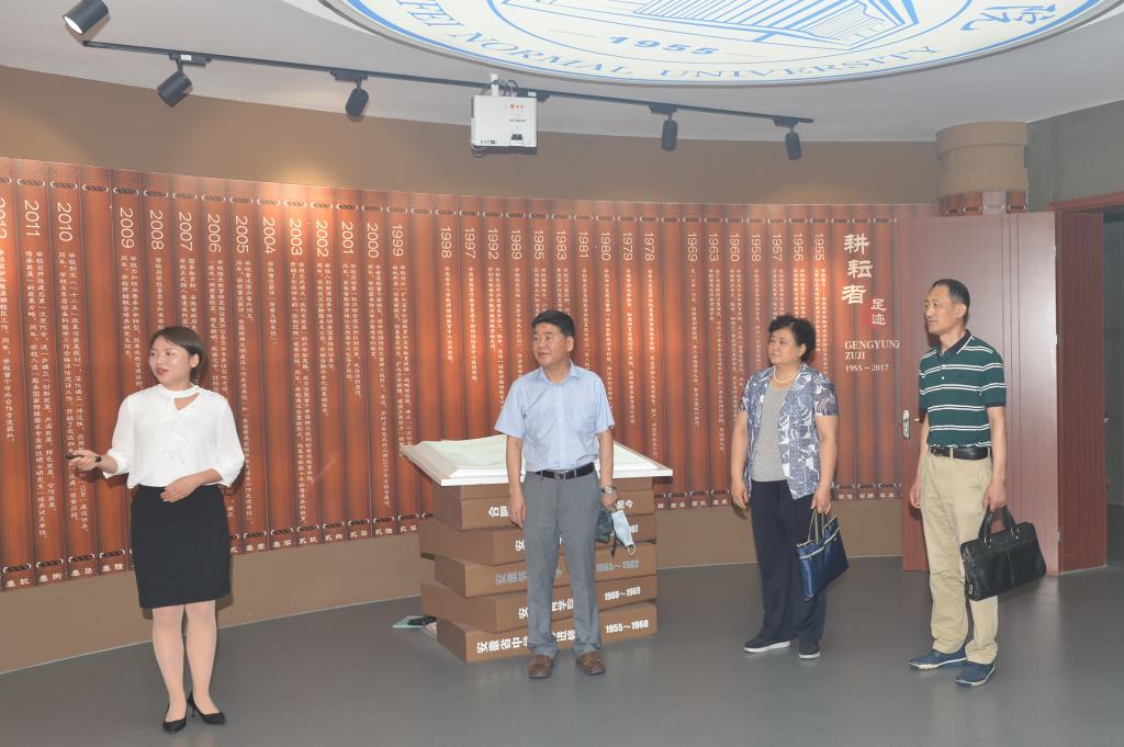 本次调研督查主要采取实地走访、听取汇报、查阅台账、座谈交流等方式进行。座谈会前,调研组一行深入校园,走访了艺术传媒学院,了解“三全育人”工作进展情况,观看了学生“课程思政”案例展示—“艺绘长征路、奋进新时代”主题创作展,并与学院和专业负责人就“课程思政”推进情况进行了交流。调研组一行还实地查看了学陶馆、校史馆以及校园宣传橱窗、展架、横幅、电子屏等校园思想文化阵地,调研了“行知学堂”学生社会实践活动开展情况等。(宣传部)