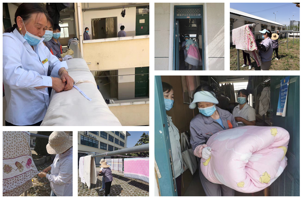 一床床被褥在阳光下飘舞,排队共沐“太阳浴”。这种“隔空”暖心服务获得了同学们的点赞,学院已做好一切准备工作,满怀期待迎接第一批返校同学的归来。(院团委 后勤处 学生工作处)