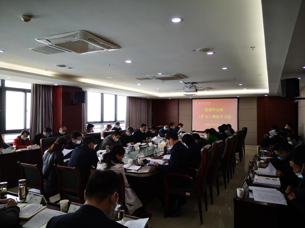 本网讯 4月22日上午,学院举行党委中心组扩大理论学习会。党委书记徐成钢主持会议。党委理论学习中心组成员出席会议,各院系级党委(党总支)、直属党支部书记,各学院院长、各部门主要负责人参加会议。