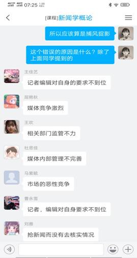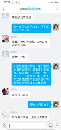 二是结合教学知识点和疫情精心准备每节课的讨论话题。每节课给学生安排一节课的教学视频观看任务,留下一节课的时间带领学生进行教学重难点的深度讲解和答疑。通过精心设计与疫情相关的讨论话题,让学生在学习教学视频后真正理解、掌握教学重难点。在《新闻学概论》课程中,当学生学习了“真实性原则”教学视频后,选择疫情中出现的虚假新闻作为案例,请学生探讨新闻虚假的类别、虚假的原因及改进的措施,进而与学生讨论新闻中事实与真相的关系、学生对“真实有限性”的认知等。在《广告学概论》课程中,当学生学习了“广告与经济的关系”教学视频后,与学生深入探讨了疫情对广告的影响等话题。我认为在网络教学中,设计话题讨论非常重要,话题需要学生愿意谈、有话谈,通过讨论,学生能够回忆起相应的教学知识点,以达到加深学习记忆的效果。