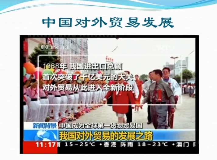 《国际贸易》课程与国内外经贸发展研究息息相关,为了让学生树立正确的认识观和价值观,我将专业知识、德育功能及价值引领三位合一,加强爱国主义教育,提升学生的认知效果。如在“国际贸易产生和发展特点”相关知识部分中专门介绍了中国改革开放40多年来对外贸易的发展变化,让学生认识到国家的日益强盛和经贸发展的作用,增强学生“国贸人”的责任感、使命感和家国情怀。在“国际分工”内容中,探讨了中国的制造业发展,让学生更好地认识中国实力,激发学生的进取心和爱国情怀。此外,还通过主题讨论来加强学生的思考,引导学生站在正确的立场发现问题、分析问题,增强明辨是非的能力以及建设性和批判性思维能力。