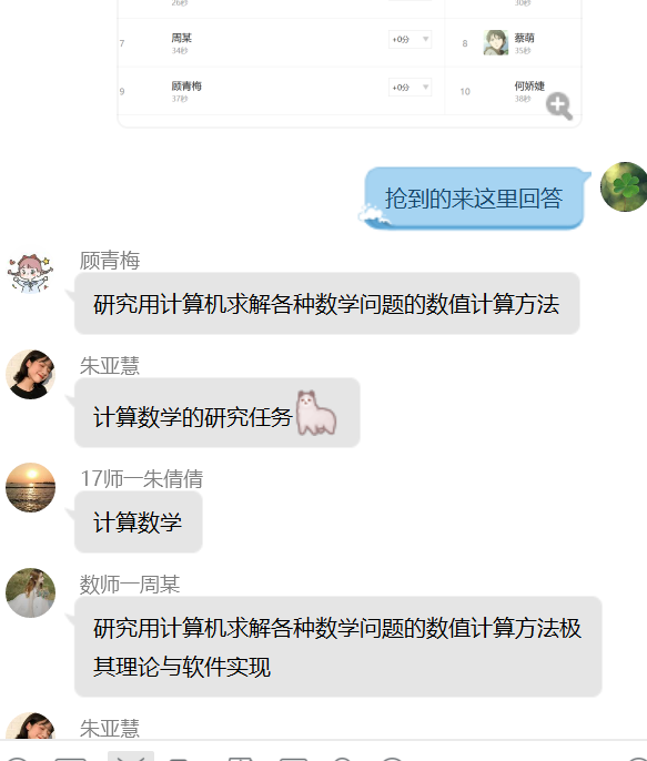 一是考虑平台功能,比如是否具有签到、抢答、分组、讨论等课堂互动功能。二是考虑平台对学生和教师的易上手程度。三是考虑课程库里可参考的课程资源。在充分了解众多平台后,我选择了超星泛雅课程教学平台。该平台不仅具有课堂互动所需要基本功能,操作简便,更重要的是大部分学生都有过使用“学习通”的经历。而且“学习通”的客服也会及时反馈咨询的问题。我教的《数值分析》是专业课,课程库里的资源不像基础课那么丰富,无论哪个课程库里都很难找到匹配特别好的课程,所以这方面影响不大 。为了让我们尽快熟悉平台的操作过程,beat365官网在“学习通”上建立了班级,并安排了一些优秀的教师给我们做培训,比如钱莉娜老师就给我们上一堂精彩的线上直播课。她在课程的录制、课程互动环节的设置,学生成绩的设置等方面给我们做了详细的介绍,并针对线上课堂的师生互动,如问卷、分组讨论、签到、抢答等功能给我们做了现场的互动演示。听了钱老师的课,受益颇多,不仅让我掌握了学习通的使用方法,也坚定了上好网课的信心。