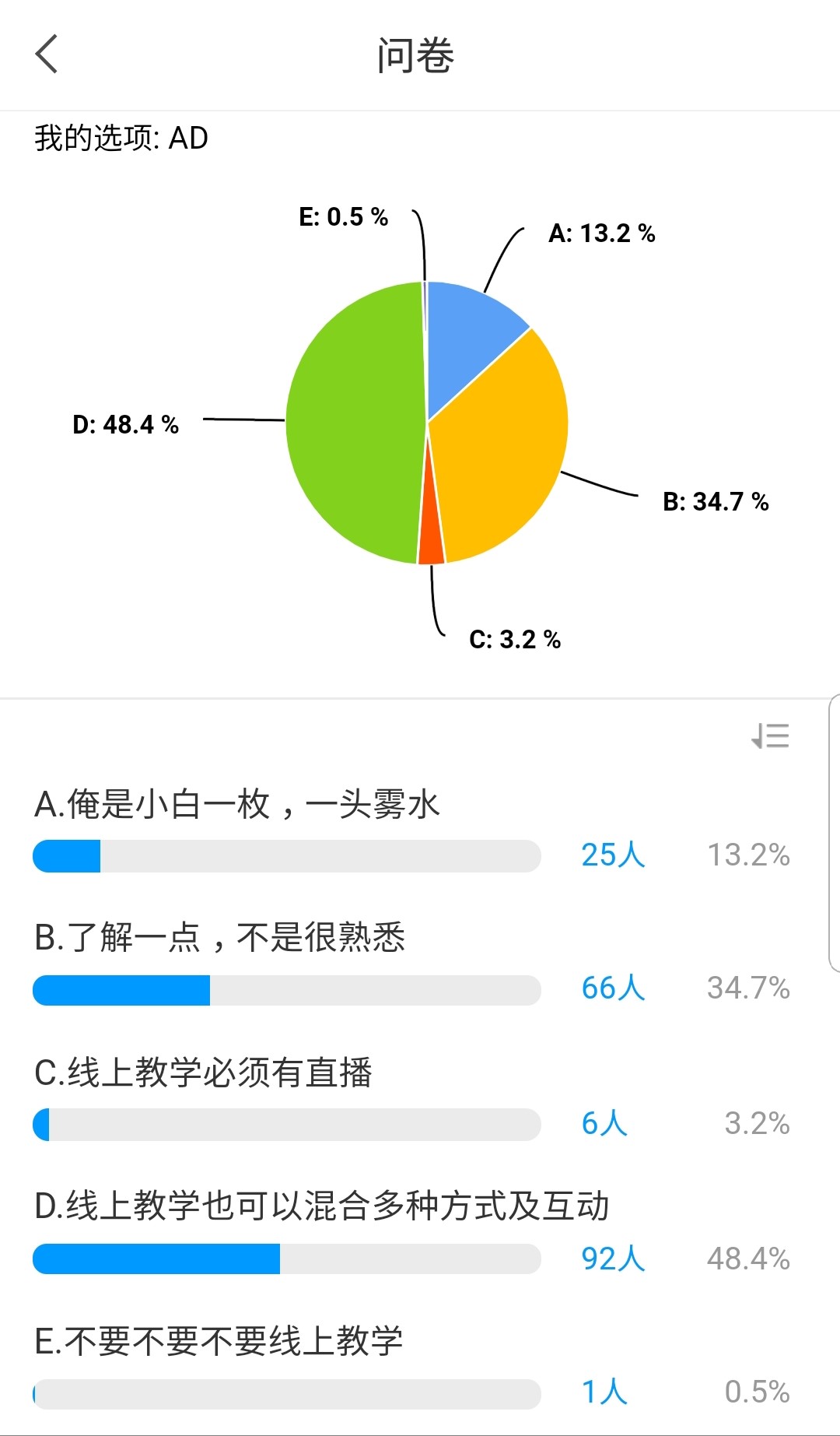 这不期而遇的网上教学,虽然一时让我措手不及、手忙脚乱,也曾为了上好一次网课而辗转难眠,但这样的经历也让我对今后的线上教学更有信心。我想在疫情过后,我会把这种线上教学模式融入常规教学课堂中去,通过这种“线上提前学习,课堂中互动巩固“的方式,把我们的课堂做“活”,让学生成为课程教学中的真正主体!