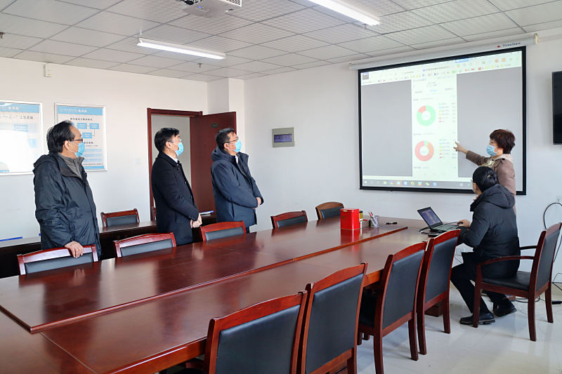 本网讯 2月17日,是我院2020年春季学期开学的第一天。党委书记徐成钢,党委副书记、校长孙道胜,副校长姚本先在办公室(防控办)负责人的陪同下到教务处实地调研了解网络教学的相关情况。教务处处长胡昂介绍了前期线上教学的组织与准备情况,汇报了主要线上平台的统计数据,并演示了一门课程的线上教学。