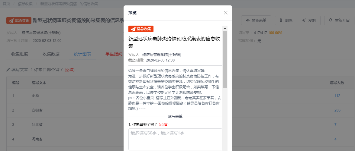 学生管理和情况摸排是关键,辅导员老师担任学生信息收集的牵头工作,秉持“全面覆盖、不漏一人”的工作原则,通过电话、短信、QQ、微信、今日校园等多渠道,组建“院、班、舍”疫情防控体系,每日定点上报数据,精准掌握每一名学生的健康状况和实时去向。