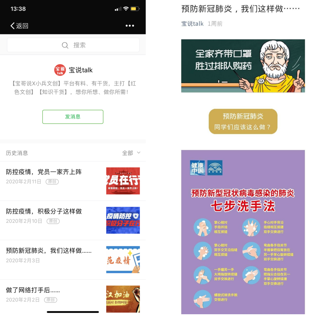 疫情肆虐,为避免学生出现恐慌、焦虑、传谣等心理或异常行为,学院学工队伍通过电话、群组等多渠道进行正面引导;借助学院心理教师资源优势开展在线心理疏导;强化空中思政,微信公众号“宝说talk”(原“宝哥说”)自2月2日起,连续发布“不信谣、不传谣”、“科学预防知识”、“积极分子在行动”等4篇文章,引导学生增强信心、掌握防护知识,做有素养、有担当的新青年。