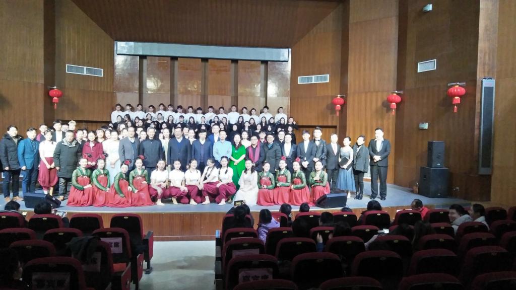 8日晚,在院领导徐成钢、孙道胜、姚本先等陪同下,周扬海校友一行还应邀来到锦绣校区音乐厅,兴致勃勃地欣赏了由我院音乐学院举办的新年音乐会,并与参加演出的师生合影留念。