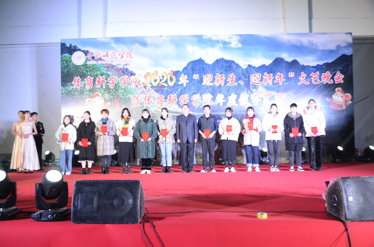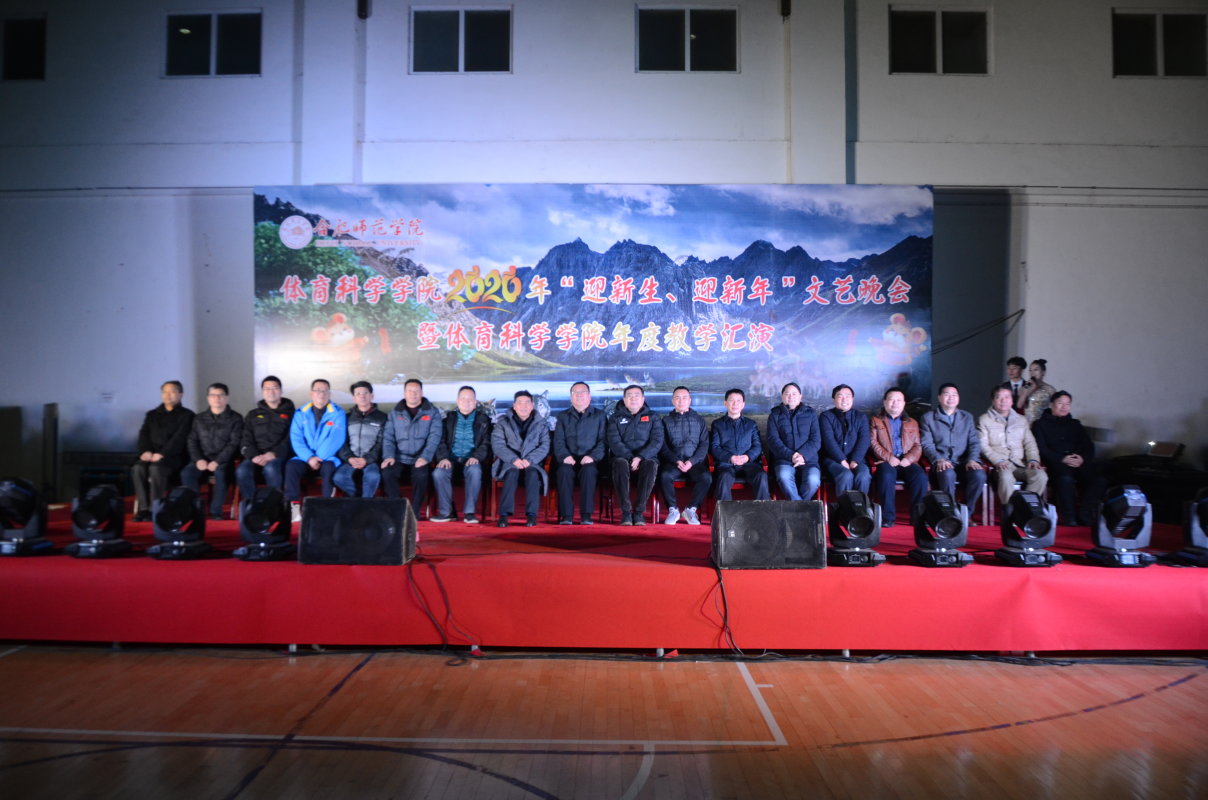 本网讯 12月23日晚,由安徽水上运动管理中心、安徽省田径游泳运动管理中心、安徽省球类运动管理中心、安徽省射击运动管理中心和beat365中文官方网站体育科学学院联合主办,体育科学学院团委、学生会承办的体育科学学院2020年“迎新生、迎新年”文艺晚会暨年度教学汇演在锦绣校区体育馆隆重举行。党委书记徐成钢,党委副书记吴昕春,党委委员、纪委书记徐文林,安徽水上运动管理中心、安徽省田径游泳运动管理中心、安徽省球类运动管理中心、安徽省射击运动管理中心负责人,学院部分职能部门负责人以及体育科学学院千余名师生欢聚一堂,共享盛宴。