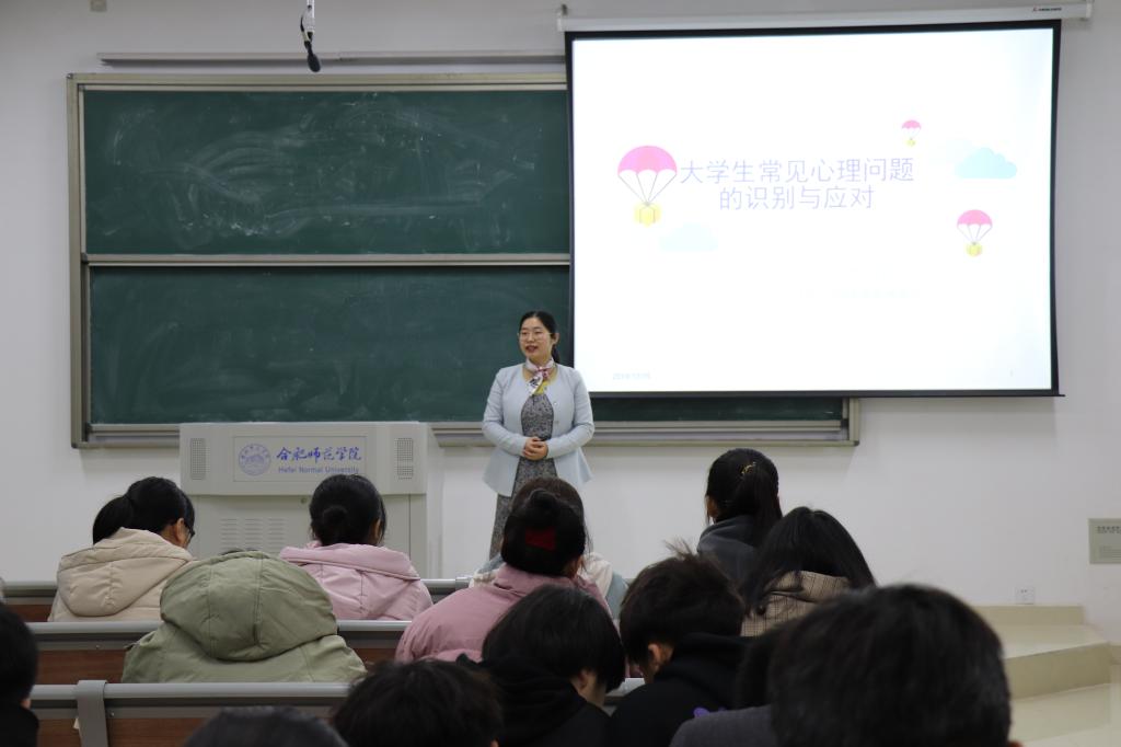 本次培训还邀请安徽建筑大学城市建设学院心理中心主任夏雨朦主讲《大学生常见心理问题》。夏雨朦从“狐狸吃葡萄的故事”导入,带领心理委员们了解不同的心理健康状态,介绍了大学生心理健康现状,重点介绍了焦虑症、抑郁症等大学生常见心理问题的症状和心理异常的征兆,并就班级心理委员如何处理应对不同心理问题进行讲解。