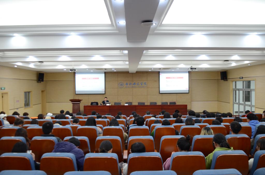 本网讯 12月12日,安徽卫视安徽新闻联播主任记者刘飞在锦绣校区学术报告厅为学院第十一期青年马克思主义者培养工程暨校园媒体学生干部培训班学员作了题为“把有意义的新闻做得有意思”的专题讲座,院团委副书记刁文彬主持讲座。