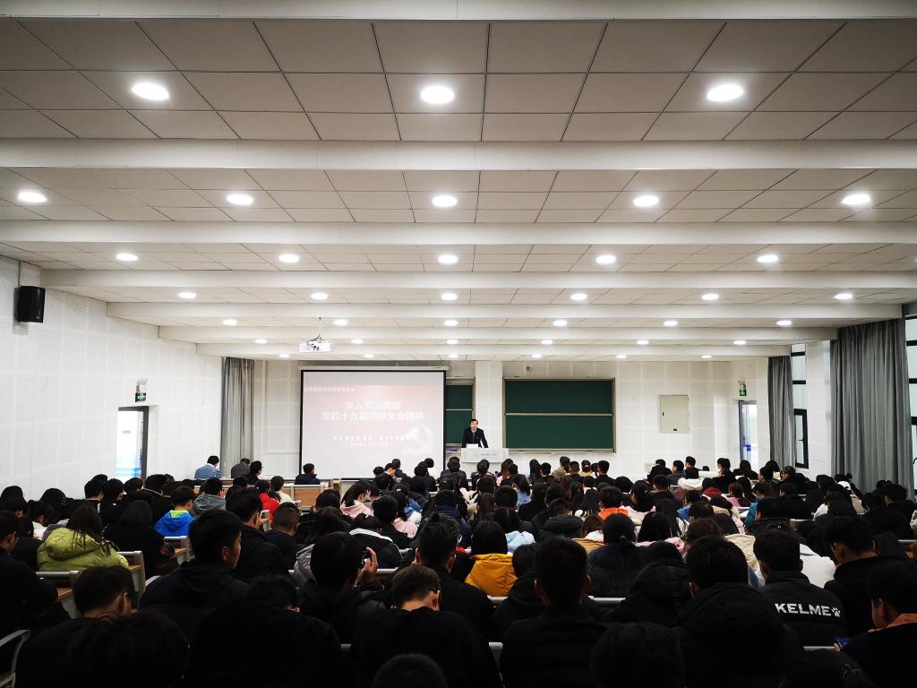 报告围绕党的十九届四中全会主题“坚持和完善中国特色社会主义制度、推进国家治理体系和治理能力现代化”,从重大意义、显著优势、总体要求、总体目标、重点任务、党的领导等方面,回顾历史、展望未来,通过对比,结合学院建设发展和工作实际,给大家讲内涵、摆事例、谈体会,全面系统的解读了党的十九届四中全会的主要精神和核心要义。