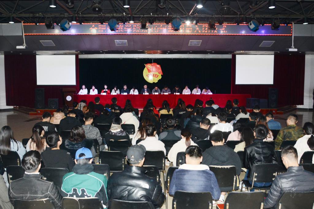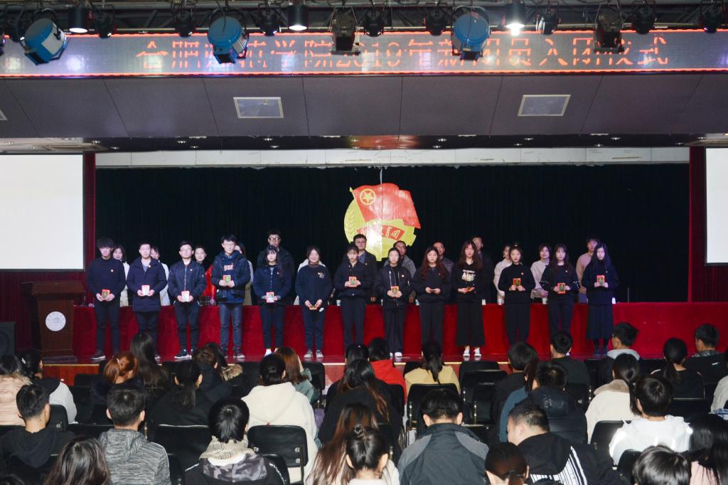 本网讯 12月10日,学院2019年新团员入团仪式在锦绣校区大学生活动中心举行,院团委和各二级学院团委负责人、2019年新入团的90名团员参加仪式。仪式由院团委挂职副书记戴玉佩主持。