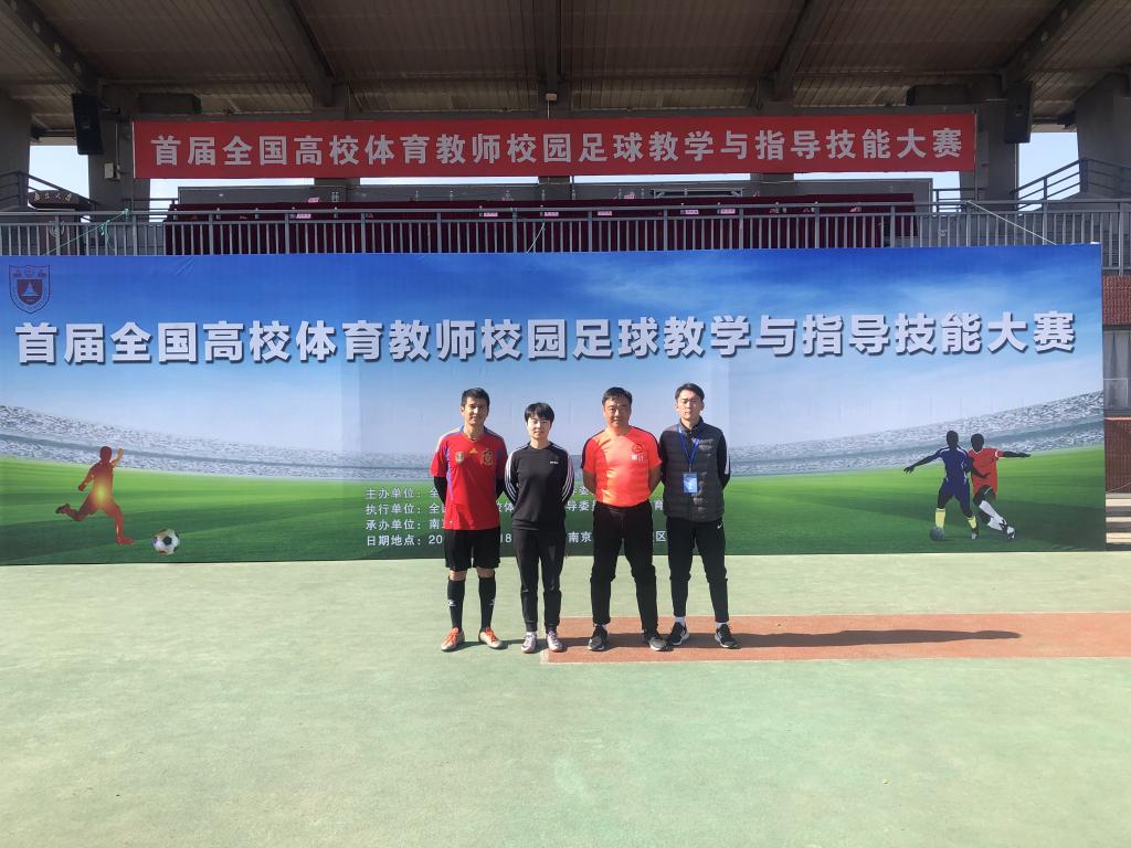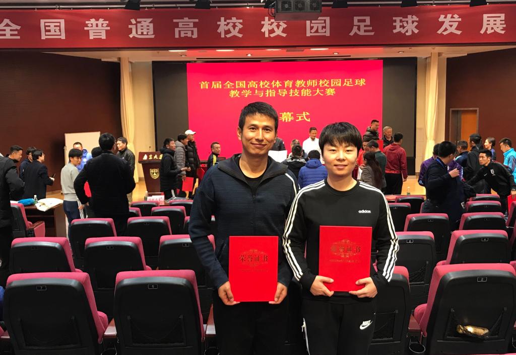 本网讯 11月18日至20日,由全国高等学校体育教学指导委员会主办的“首届全国高校体育教师校园足球教学与指导技能大赛”在南京大学举行,来自全国28个省市自治区的197所高校的近200名足球教师参赛。我院教师谢永力和王金晶代表我省参赛。最终,谢永力获得课程教学组一等奖,王金晶获得课程教学组二等奖。