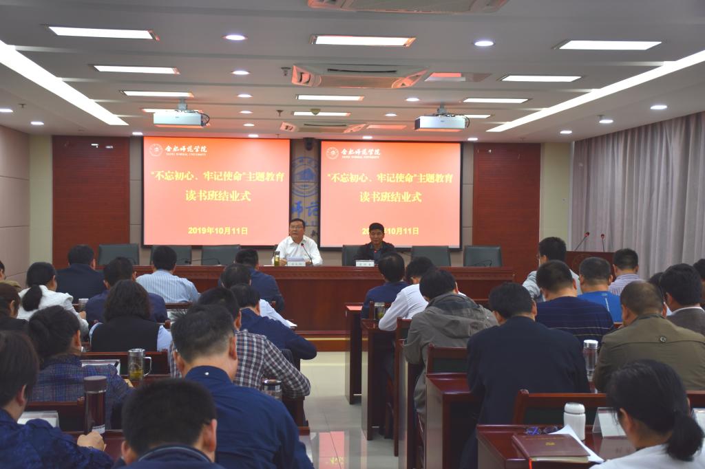 本网讯 10月11日下午,学院“不忘初心、牢记使命”主题教育读书班结业式在锦绣校区行知楼第三会议室举行。院领导徐成钢、孙道胜、李进华、吴昕春、谢阳群、姚本先、曹卓良出席结业式,党委书记徐成钢作总结讲话,党委副书记吴昕春主持结业式。