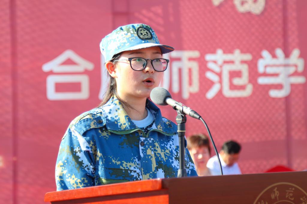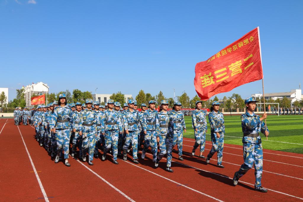 大会在庄严雄壮的国歌声中拉开帷幕。2019级参训新生,身穿统一的军训迷彩服,排着整齐的队列,昂首挺胸站立在运动场上等待领导老师检阅。