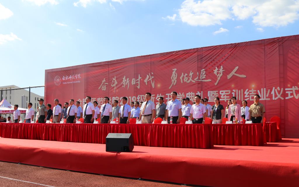 本网讯 蓝天白云,晴空万里,碧波荡漾,又见美丽壮观的“滨湖蓝”。9月20日下午,学院在滨湖校区田径运动场隆重举行2019级新生开学典礼暨军训结业仪式。院领导徐成钢、孙道胜、李进华、吴昕春、谢阳群、曹卓良,中国人民解放军陆军炮兵防空兵学院施训单位负责人,党委委员,院学生工作领导组全体成员,各二级学院党政负责同志,新生辅导员、班主任参会。大会由党委书记徐成钢主持。