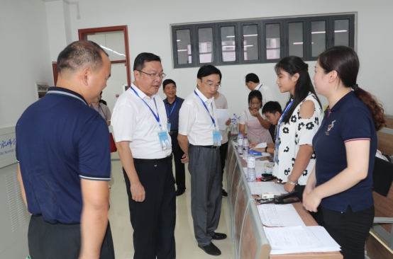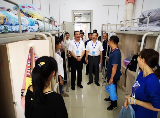 院领导徐成钢、孙道胜、李进华、吴昕春、谢阳群、姚本先、曹卓良及相关部门负责同志共同到各新生报到点检查指导迎新工作,慰问工作人员和学生志愿者、党员先锋队,走进宿舍看望新生和家长,来到食堂向新生和家长问询饭菜品质。院领导全员出动,全程参与,全方位检查督促迎新报到各个环节运转情况,现场协调解决有关问题。
