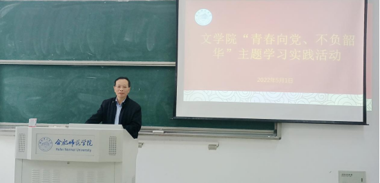 本网讯 在五四青年节即将到来之际,我院于5月1日上午10点在滨湖校区博学楼A106教室组织开展“青春向党,不负韶华”学习实践活动,活动由文学院辅导员李惠恩主持,文学院党委书记李旺生出席活动,文学院第四十七期分党校滨湖校区全体学员参与活动。
