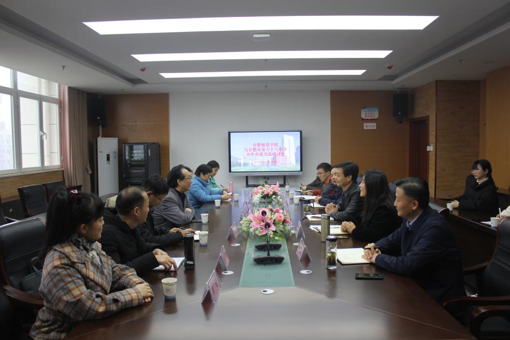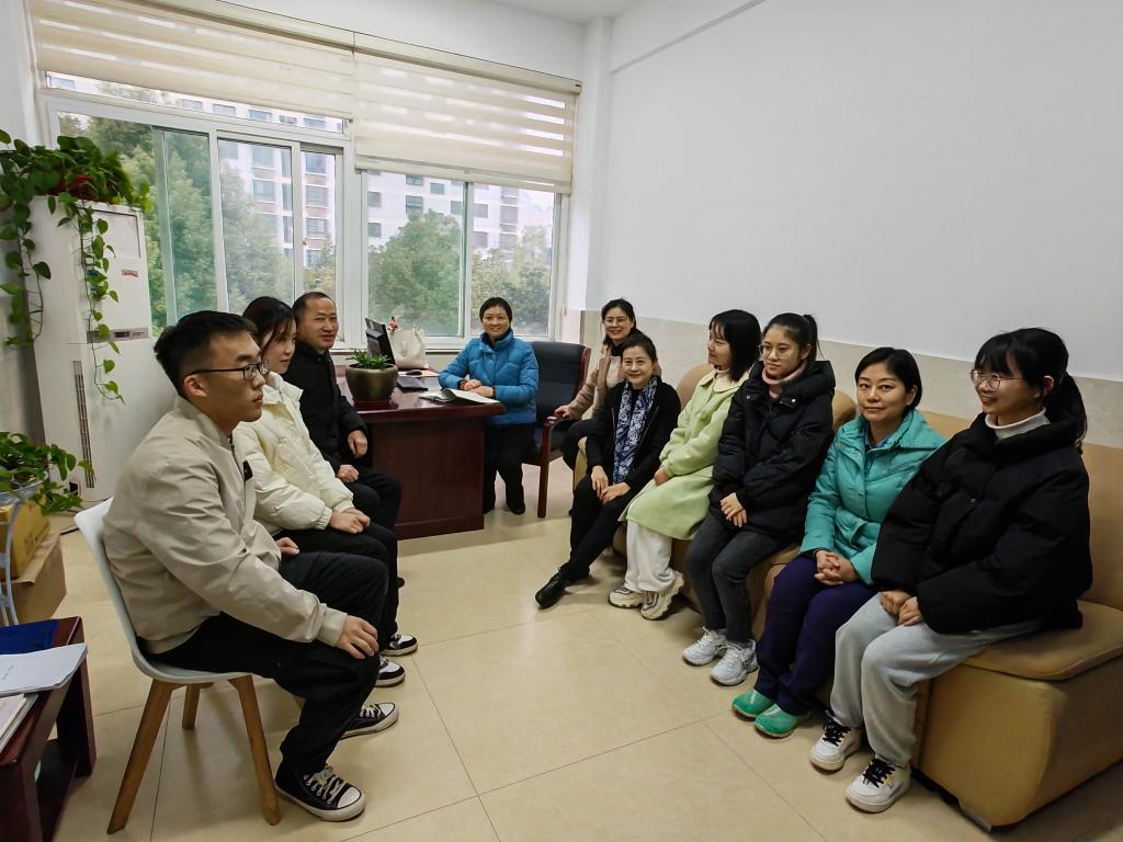 本网讯 12月16日下午,我院领导赴合肥市第六十八中学看望挂职教师和实习生,学院党总支书记吕田力、实践教学部主任魏兵副教授、研究生教学部副主任和校外实习指导老师陈露一行走进我院挂职教师傅文茹办公室,亲切地与傅老师和实习生们召开座谈会,让傅老师和五位实习生(2019级思想政治教育班陈玉钊、方媛、李悦、周治影和周欣雨)感觉温暖满满。