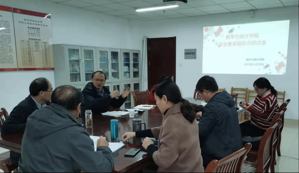 本网讯 11月29日下午,数学与统计学院领导班子成员以及师范专业认证办公室骨干教师在行知楼1108召开会议,研讨数学与应用数学师范专业认证自评工作。