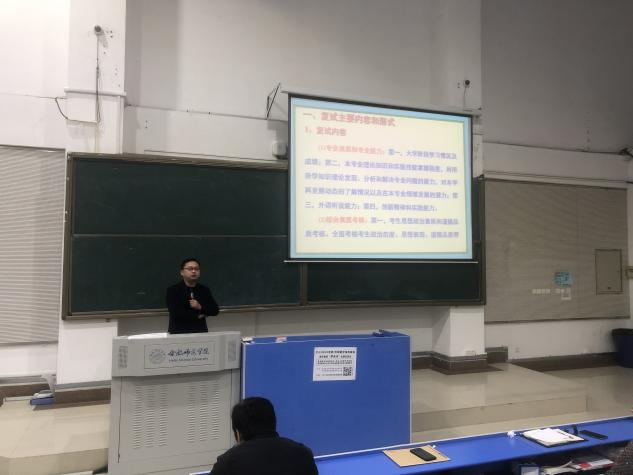五位主讲教师分别为大家做了不同主题的报告。王占军围绕“心态,状态,稳态,计划,谋划”等几个方面对学生进行初试考前指导。陈金武强调复试除了考察学生的专业素养外,更多地关注学生的综合素质。他从自我介绍,语言组织,内容呈现等方面为同学们提供了面试小技巧并就复试基本流程进行了细致的介绍。方雪根据了解以往学生的考研经历,对各学科如何学习、看什么版本资料等提供了宝贵建议;程诚结合自身考研经历分享排解压力的方式方法并提出可行性建议;杨星星用自身的经历针对考研复习计划,心态等方面给同学们做了具体指导。随后,同学们对在复习过程中遇到的问题和困惑相继提问,老师们一一悉心解答。