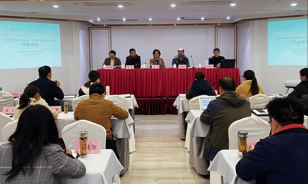 本网讯 11月7日上午,教育部“国培计划”——初中数学教师“数与代数”教学能力提升分层分类培训第二期开班仪式举行,本次国培项目由继续教育学院主办,数学与统计学院承办。继续教育学院院长吴文、数学与统计学院院长王家正、继续教育学院副院长宋辉、数学与统计学院国培项目负责人沈南山出席开班仪式。