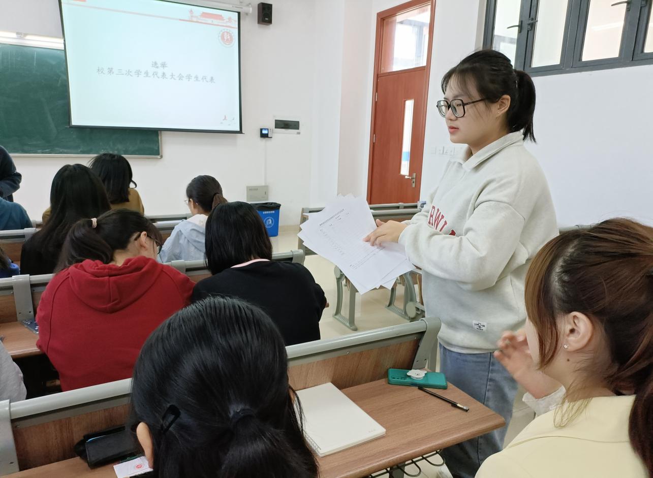 本网讯 根据《关于筹备召开beat365中文官方网站第三次学生代表大会的通知》精神,学院于11月3日在滨湖校区博学楼A102教室组织召开了教师教育学院第一次学生代表大会。本次大会由学生会主席王雨欣主持,各班级学生代表积极参会。大会全面总结了过去一年的学生会工作,并选举产生了新一届主席团。