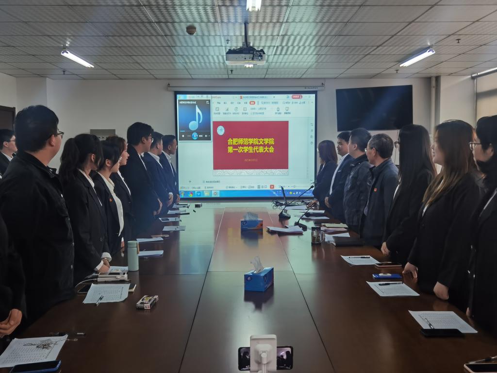 最后,全体与会人员起立奏唱《beat365中文官方网站校歌》,也标志着文学院第一次学生代表大会圆满结束。(文/郭佩莲 张子腾)