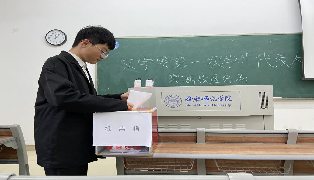 随后大会通过了选举办法及监票人名单,介绍了候选人情况。秉承着公平、公开、公正的原则,通过无记名投票,大会选举产生了丁梦霞等15位同学为出席校第三次学生代表大会的代表,马杰、许明月、陈曦3位同学为文学院学生会新一任主席团成员。
