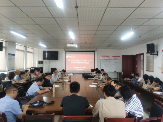 张忠祥表示,深入学习贯彻习近平总书记“七一”重要讲话精神,是学院当前和今后一个时期的重要政治任务,要全面系统学、深入思考学、联系实际学,坚定地把习近平总书记的殷切嘱托转化为思路举措和强大动力,立足本职、作出贡献。