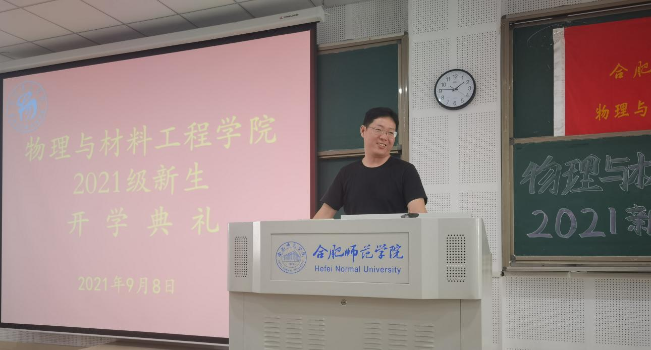 本网讯 硕果金秋,满载着喜悦和幸福。蓝天白云,怀揣着憧憬和理想。9月8日下午,物理与材料工程学院在滨湖校区博学楼隆重举行2021级新生开学典礼。学院党委书记唐洁、副院长李大创出席大会,各专业负责人、辅导员及2021级全体同学参加。典礼由学院党委副书记吴震主持。