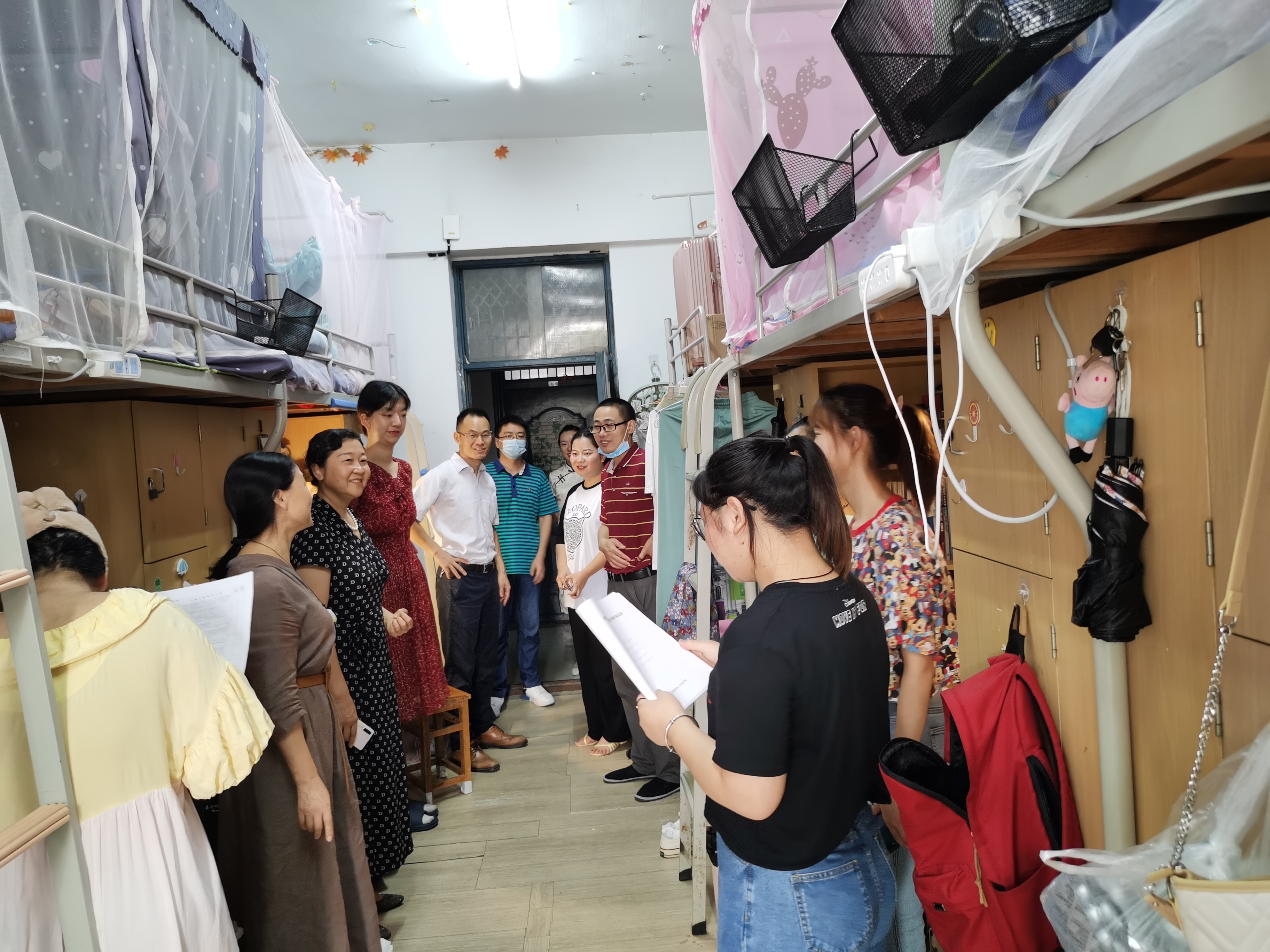 每走访一个宿舍,学院领导代表学院全体教职工欢迎大家带着新气象返校,询问了学生们的适应情况、暑期实践、本学期个人规划等方面的工作,向同学们宣传了预防电信诈骗相关工作,强调宿舍卫生、安全用电等情况重要性。