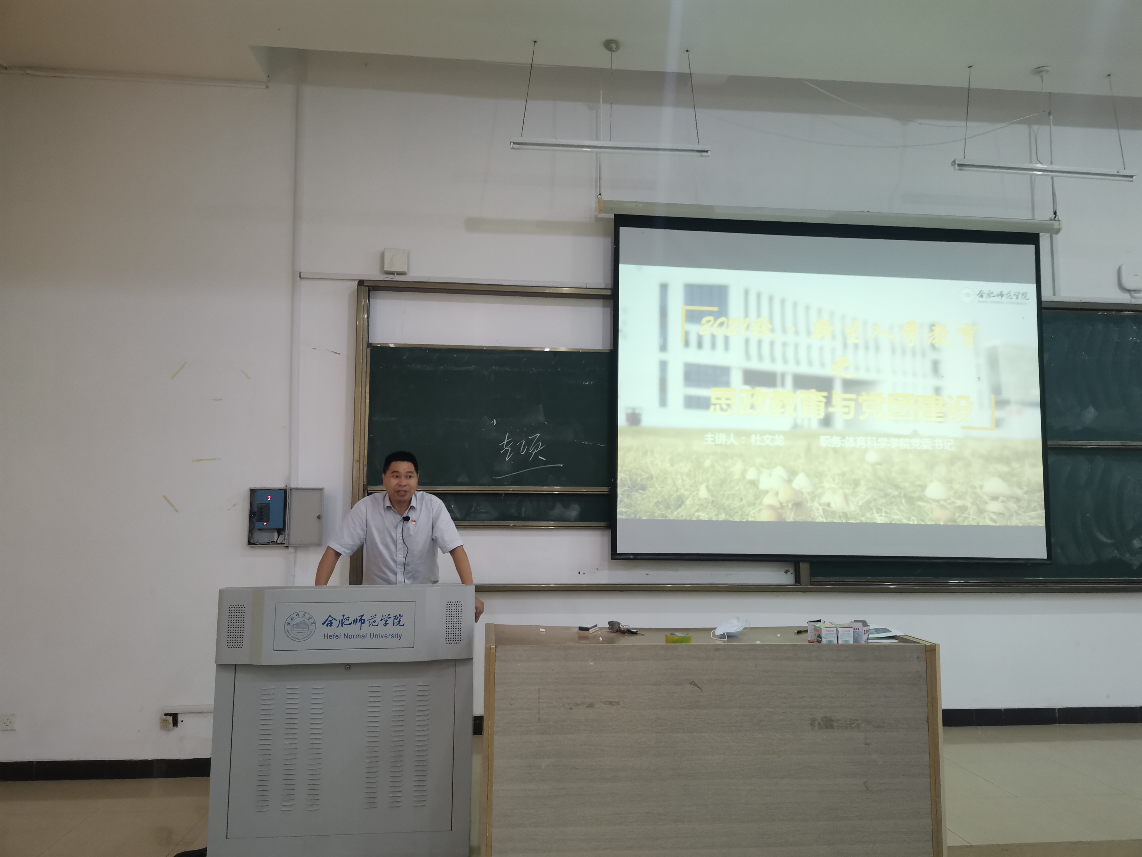 随后,体育科学学院党委书记杜文龙围绕“大学生思想政治教育”,从“立德树人”、“育人体系”、“端正动机”、“青春无悔”等四个方面,教育引导新生提升思想觉悟,培养爱国情感,扣好人生的第一粒扣子,认真学习、苦练本领,展现合师体育人的精神风貌,争当德才兼备的新时代大学生,做合格的社会主义建设者和接班人。他希望新生能够尽快适应大学生活环境和人际关系的变化,处理好自我管理与遵守纪律、个性发展与融入集体、专业学习与职业规划之间的关系,多读书、能吃苦,管理好时间,调整好心态,在新的起点上开启新的希望,以梦为马,不负韶华!