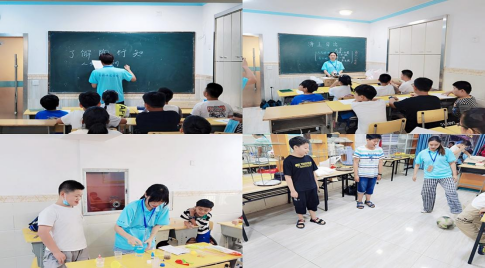 除了必修课,Hots行知学堂的“小先生”们也结合自己的专业特色和个人特长,开设了音乐、书法、科学、体育等兴趣课程,努力提高小学员们的学习兴趣。课堂上不仅有彩虹喷泉、人造雪等有趣的小实验,还有踢毽子、踢足球、打羽毛球等丰富多彩的体育运动,促进小学员们提高动手实践能力,锻炼身体,寓教于乐。