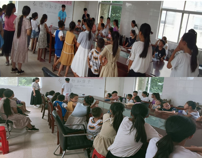本网讯 近期,一场别开生动的开班仪式在安徽省蚌埠市高新区禹庙村居委会二楼举行,来自化学化工学院等三个学院的8位“小先生”、31名小学员齐聚一堂,共同迎接弘德行学堂的到来。