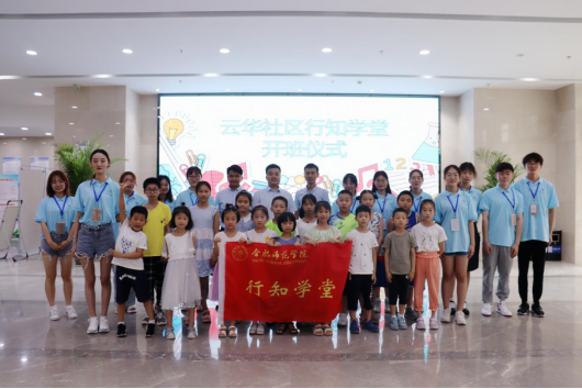 本网讯 7月16日上午,文学院包河区云华社区“行知学堂”举办开班仪式,万年埠街道有关负责同志、文学院党委副书记陈好、学堂指导老师李惠恩,学堂12名“小先生”以及全体小学员参加了开班仪式。